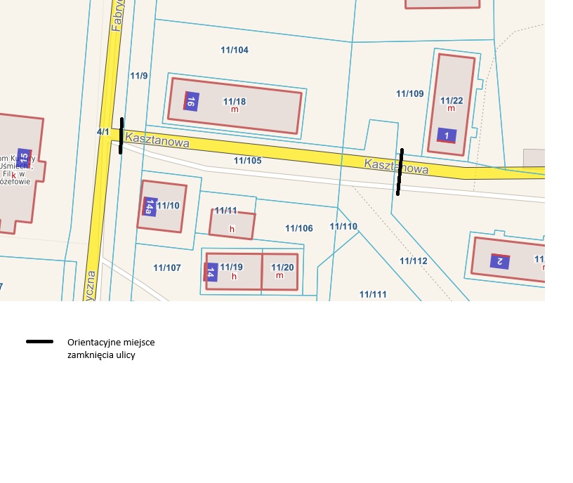 Wydział Inwestycji i Remontów informuje że od dnia 29.10 (środa) do dnia 7.11 (piątek), prowadzone będą prace związane z modernizacją odcinka ulicy Kasztanowej. W tych dniach remontowany odcinek będzie nieprzejezdny, a miejsca parkingowe będą niedostępne. Prosimy o niepozastawianie samochodów na terenie prowadzonych robót. Przepraszamy za powstałe utrudnienia.