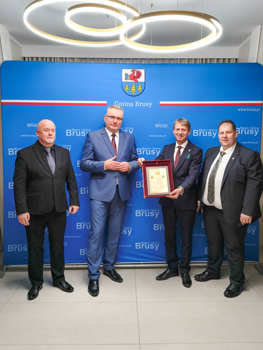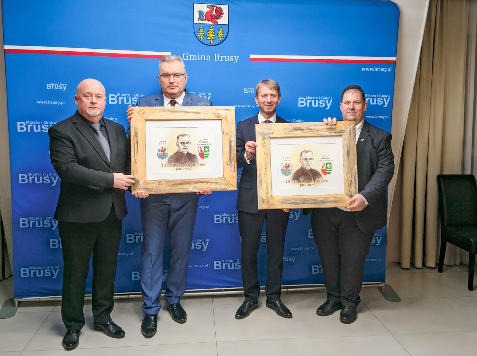 20 lat naszej współpracy to nie tylko piękny jubileusz, to też wspólne spotkania i wymiany doświadczeń przedstawicieli samorządów, wymiany młodzieży, wymiany kulturalne zespołów ludowych i współpraca jednostek kultury, poznawanie się i budowanie relacji oraz wiele wspólnych wspomnień. Na dalsze lata życzymy sobie oraz naszym społecznościom dalszej owocnej współpracy – mówił burmistrz Paweł Kanclerz przekazując na ręce burmistrza Brus Witolda Ossowskiego pamiątkową tabliczkę.