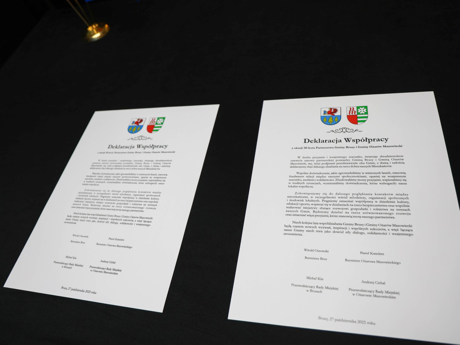 16 października minęło 20 lat od kiedy podpisaliśmy umowę o współpracy partnerskiej z gminą Brusy. Aby uczcić tę ważną rocznicę, obydwa samorządy przygotowały spotkanie, podczas którego nastąpiło uroczyste odnowienie deklaracji.