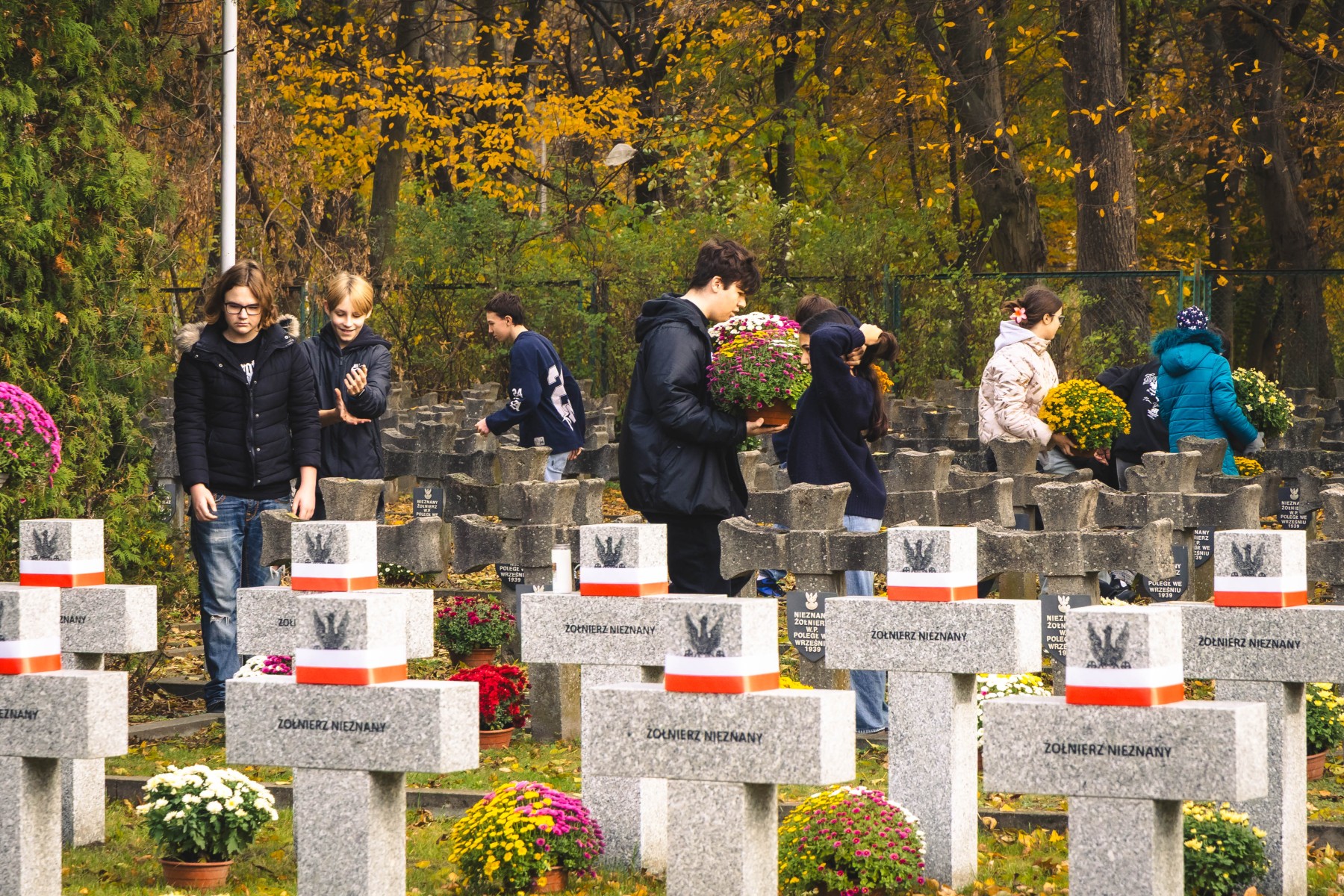 Zgodnie z naszą tradycją, 30 października dzieci oraz młodzież szkolna wraz z przedstawicielami samorządu lokalnego dekorowali kwiatami groby na cmentarzach wojennych w Ołtarzewie i Pilaszkowie oraz miejsca pamięci na terenie gminy.