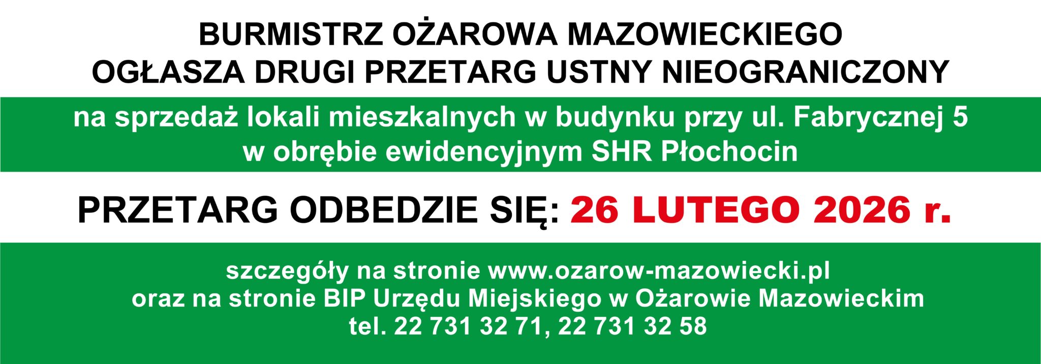 „BURMISTRZ OŻAROWA MAZOWIECKIEGO OGŁASZA DRUGI PRZETARG USTNY NIEOGRANICZONY