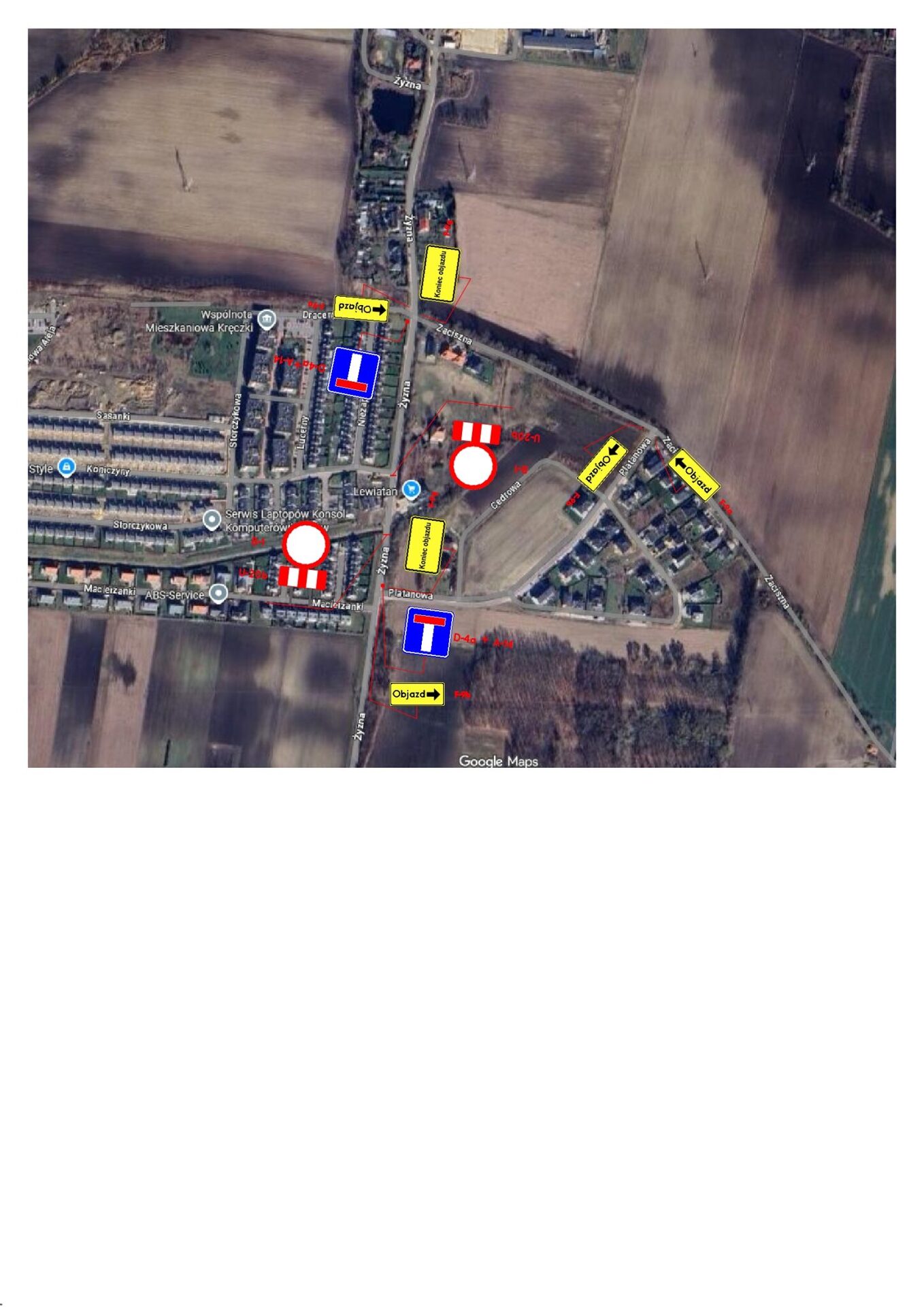 Wydział Inwestycji i Remontów informuje, że od dnia 6 do 9 marca zamknięty zostanie odcinek ul. Żyznej przy sklepie Lewiatan w Kręczkach. Planujemy w tych dniach poprawę wybudowanych progów zwalniających. Objazd dla pojazdów mechanicznych zostanie zapewniony ulicami Platanową i Zaciszną zgodnie z załączonym rysunkiem. Ruch pieszy będzie odbywał się bez zmian istniejącym chodnikiem wzdłuż ul. Żyznej. Wszystkich kierowców prosimy o spokojną i bezpieczną jazdę wyznaczoną trasą objazdu. Za utrudnienia przepraszamy.