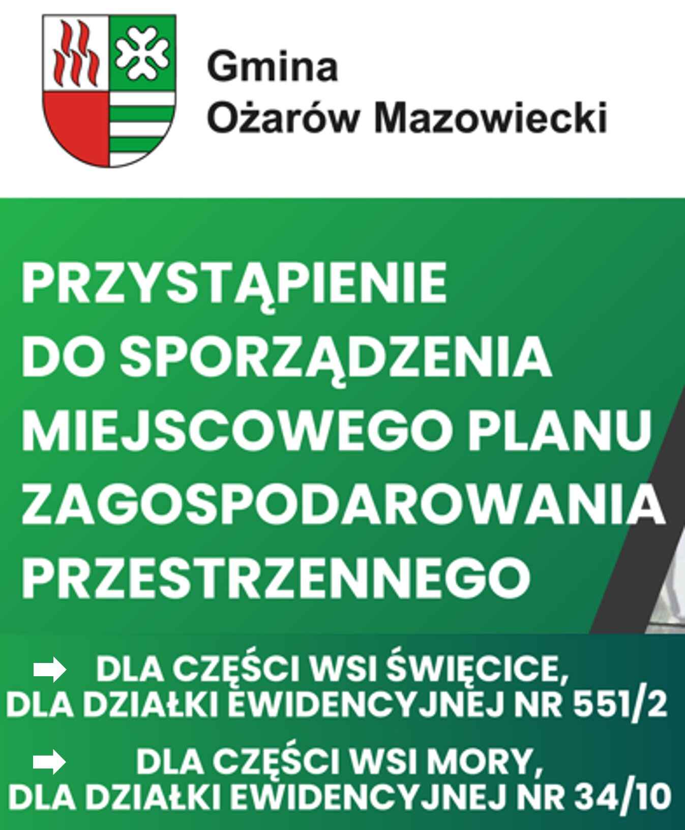 Burmistrz Ożarowa Mazowieckiego zawiadamia o podjęciu przez Radę Miejską w Ożarowie Mazowieckim: Uchwały Nr XVIII/167/25 z dnia 28 sierpnia 2025 r. w sprawie przystąpienia do sporządzenia miejscowego planu zagospodarowania przestrzennego