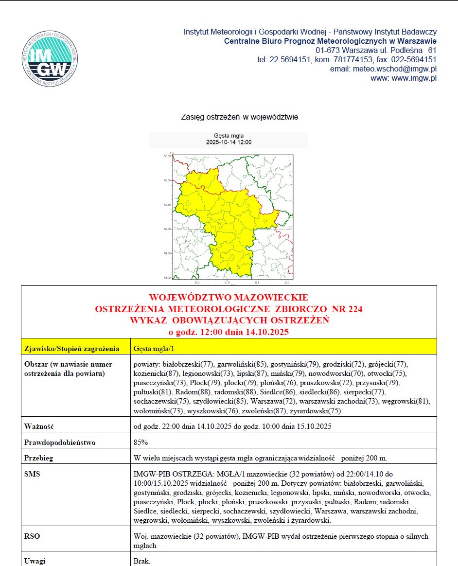• Ostrzeżenie meteorologiczne IMGW