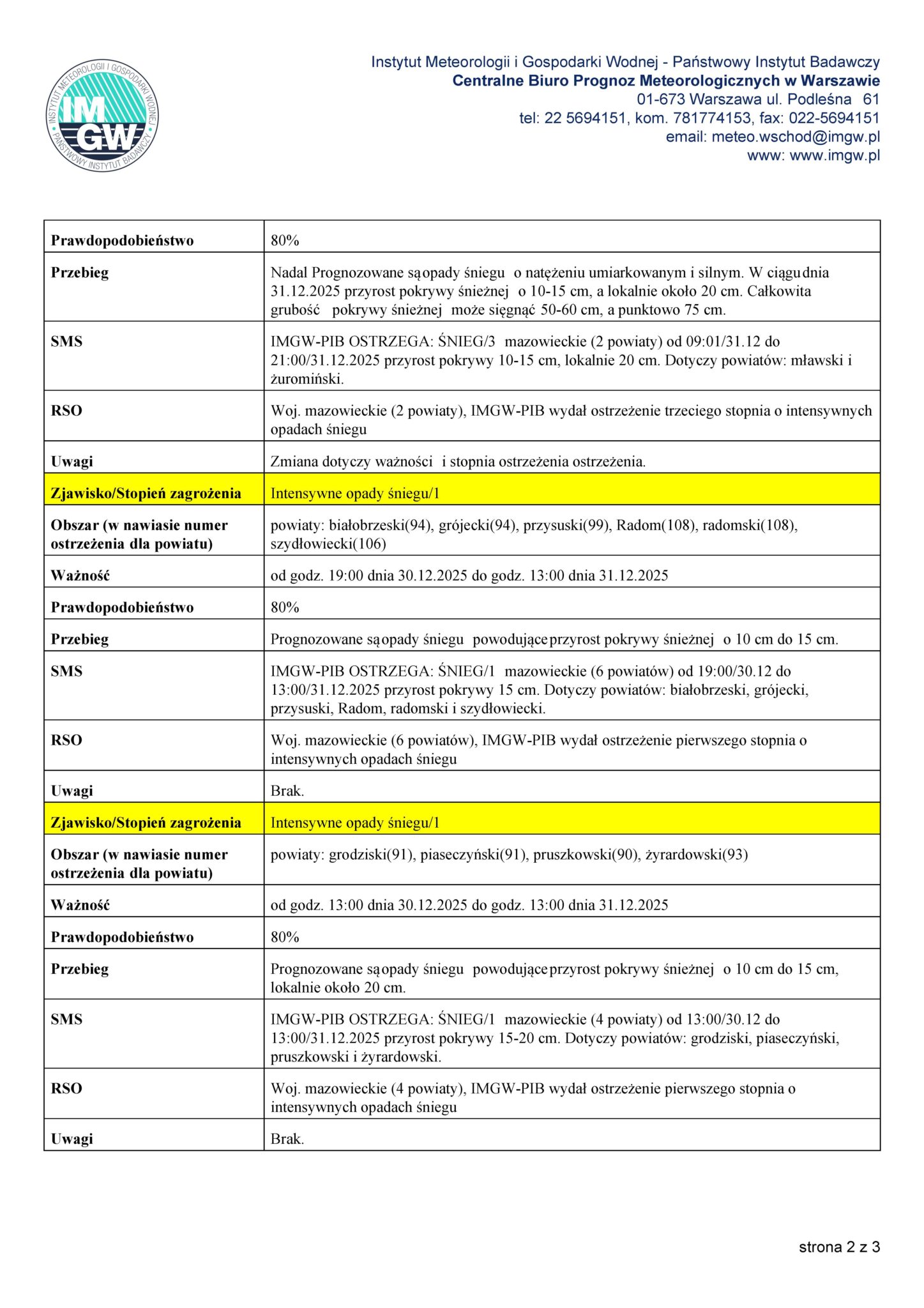 6. Ostrzeżenie meteorologiczne IMGW