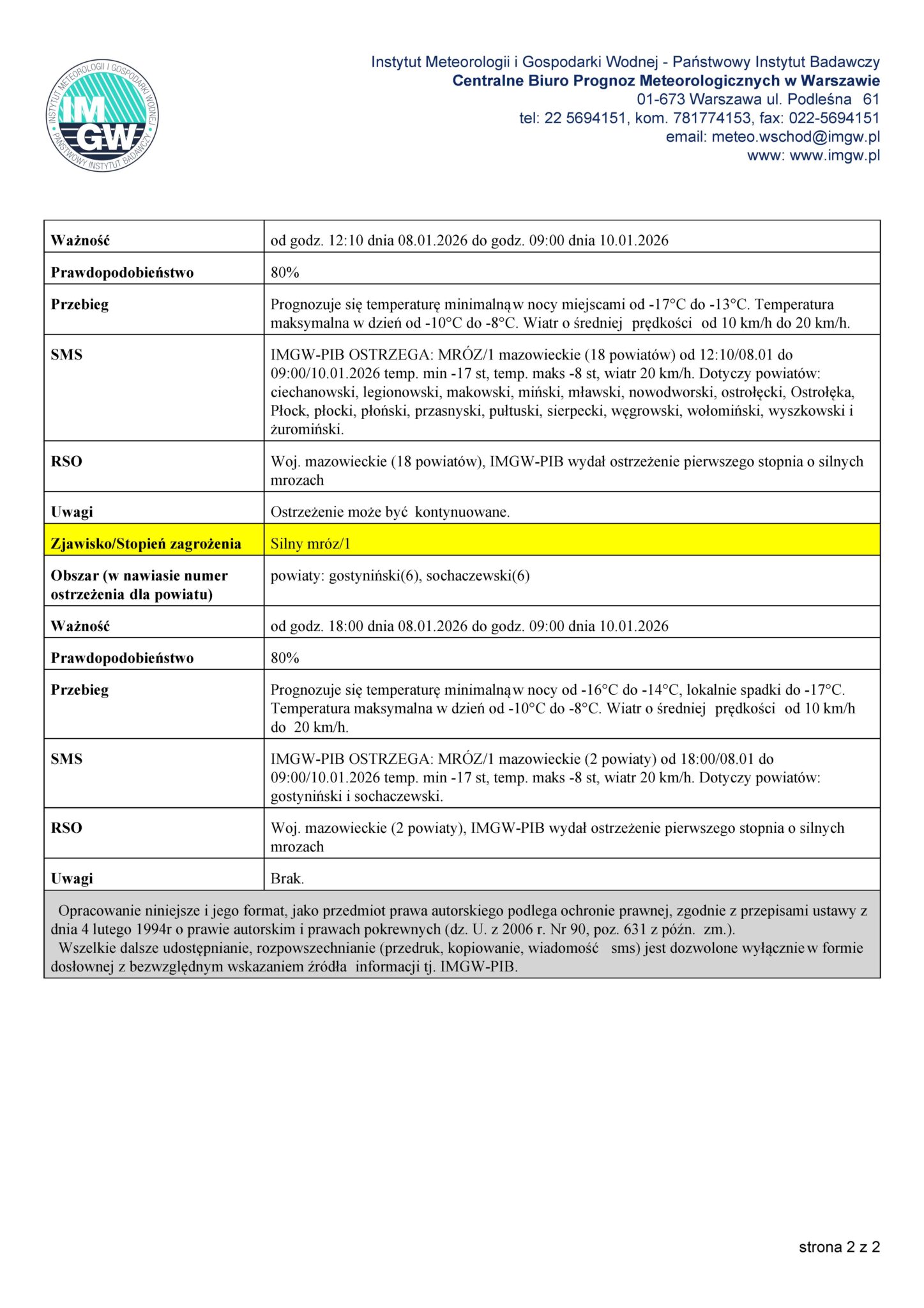 6. Ostrzeżenie meteorologiczne IMGW