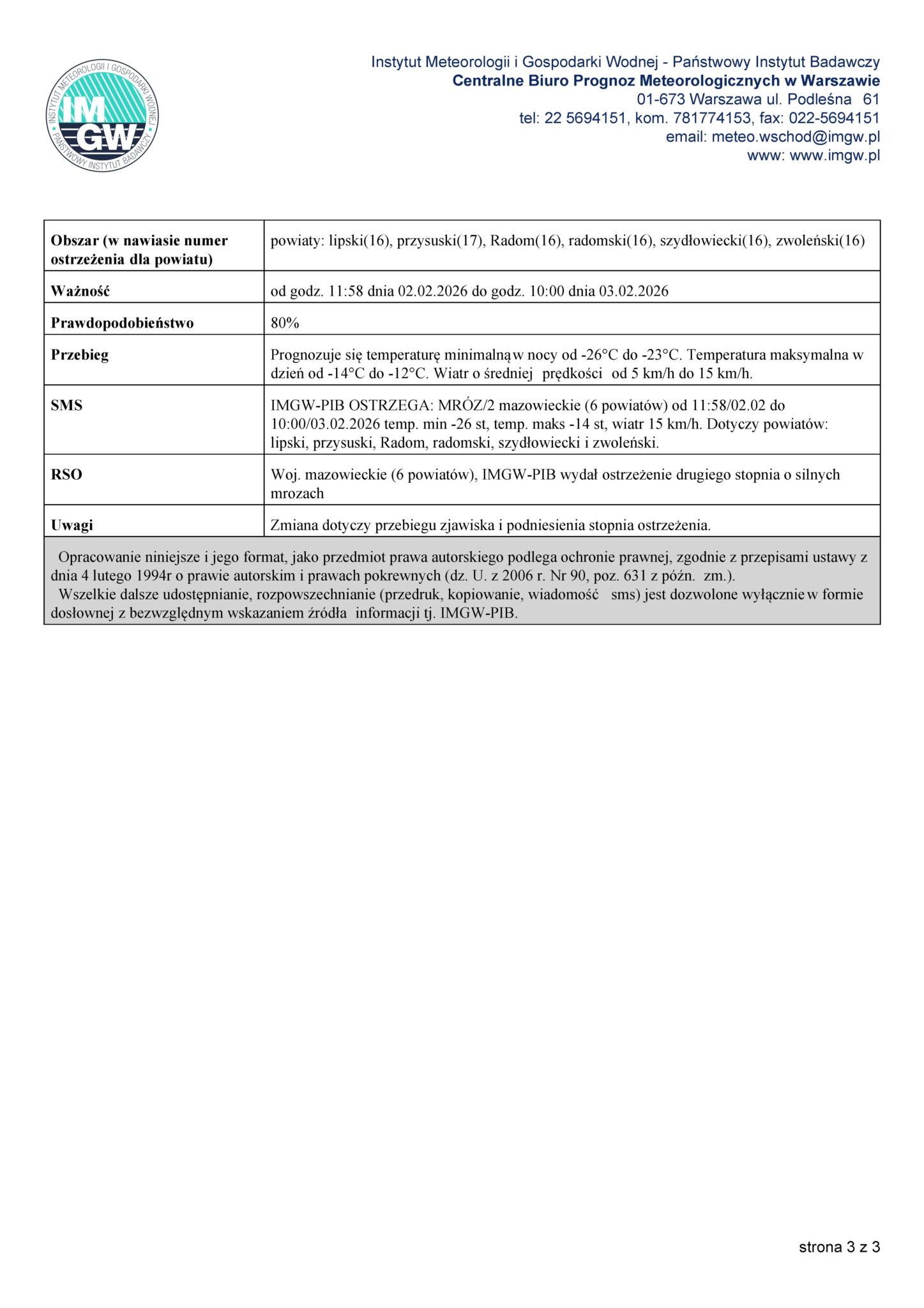 6. Ostrzeżenie meteorologiczne IMGW